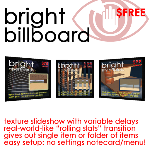 Billboard & item giver, variable texture slideshow, rolling slat animation!
