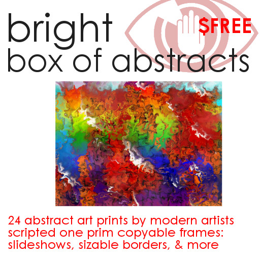 Each object in the box shows one of these images in a frame, and takes one point of land impact. They are copyable, so you may rez as many as you need.